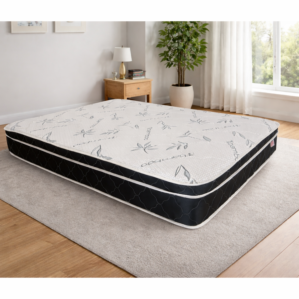 Enhance your sleeping experience with our Bamboo Pillow Top Mattress, expertly crafted using high-quality materials to provide both comfort and support. Featuring a plush pillow top layer, you’ll enjoy the sensation of sleeping on a cloud, while the firm core ensures optimal spinal alignment.